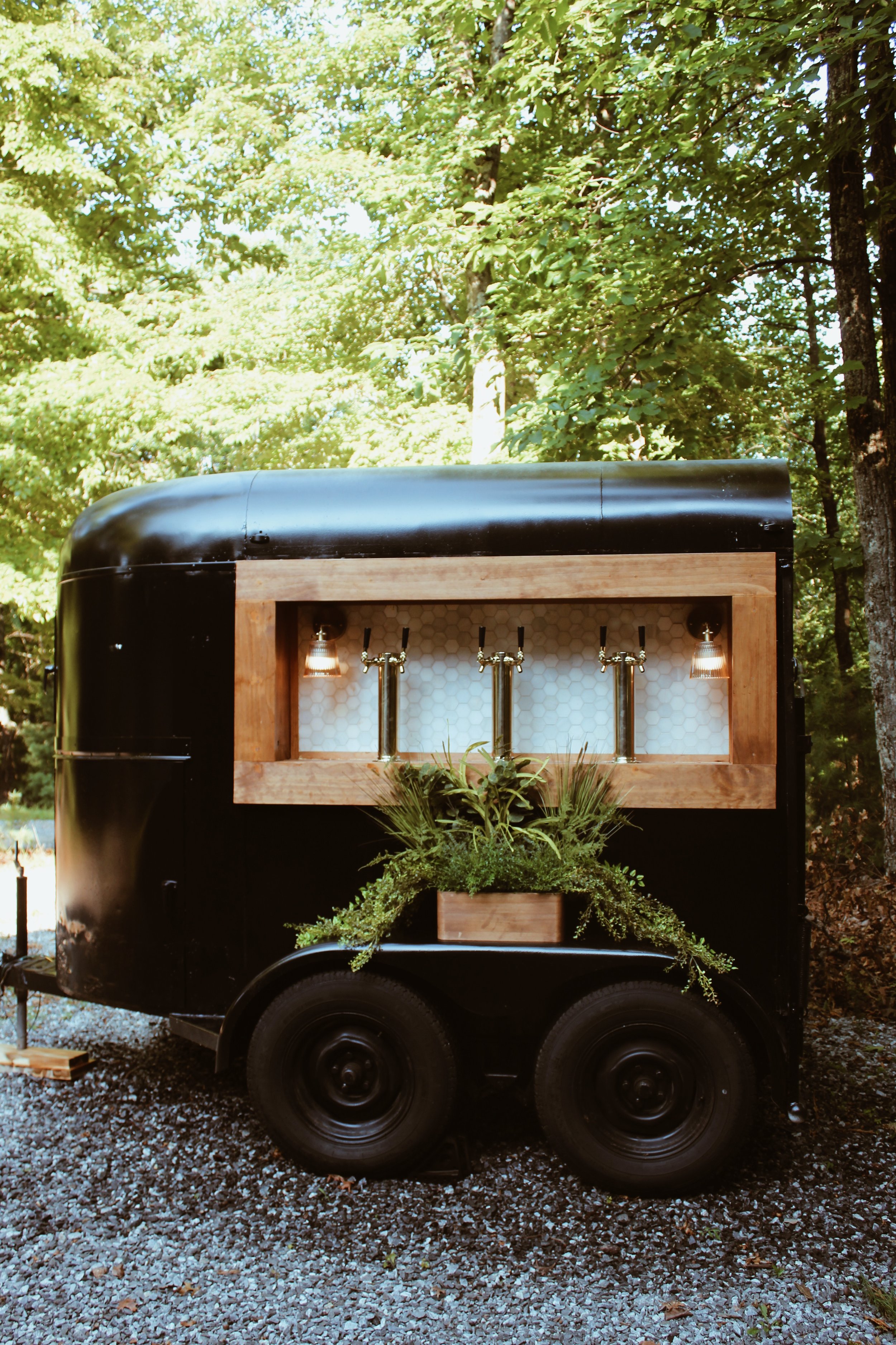 A portable bar setup that works perfectly indoors or outdoors, fits easily into most spaces, and offers a full-service bar experience—either on its own or alongside our trailers. It includes licensed and insured bartenders, decor, and all the essentials needed to serve beer, wine, and cocktails.